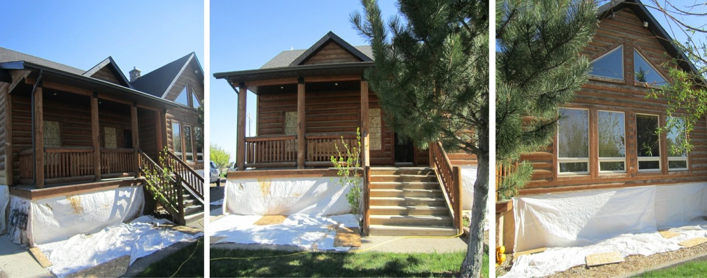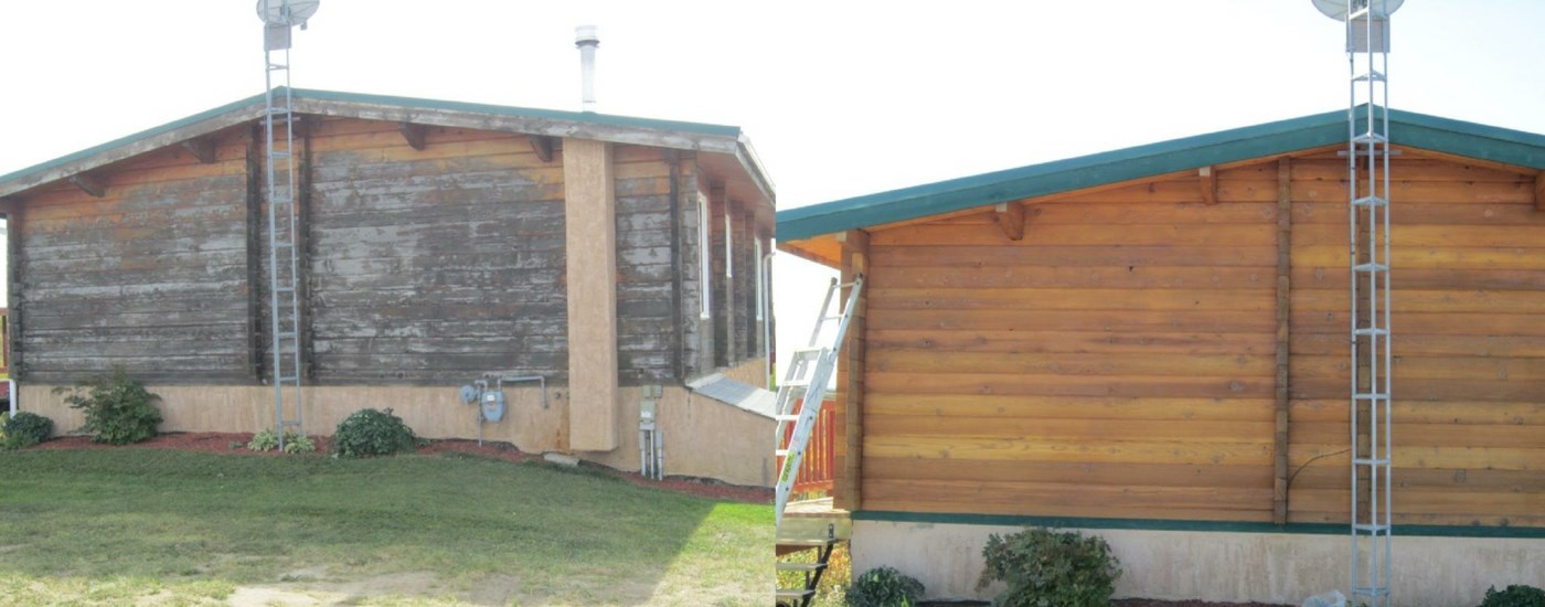 5). Blow off all excessive media and debris from your log home, and optional pressure wash your log home.